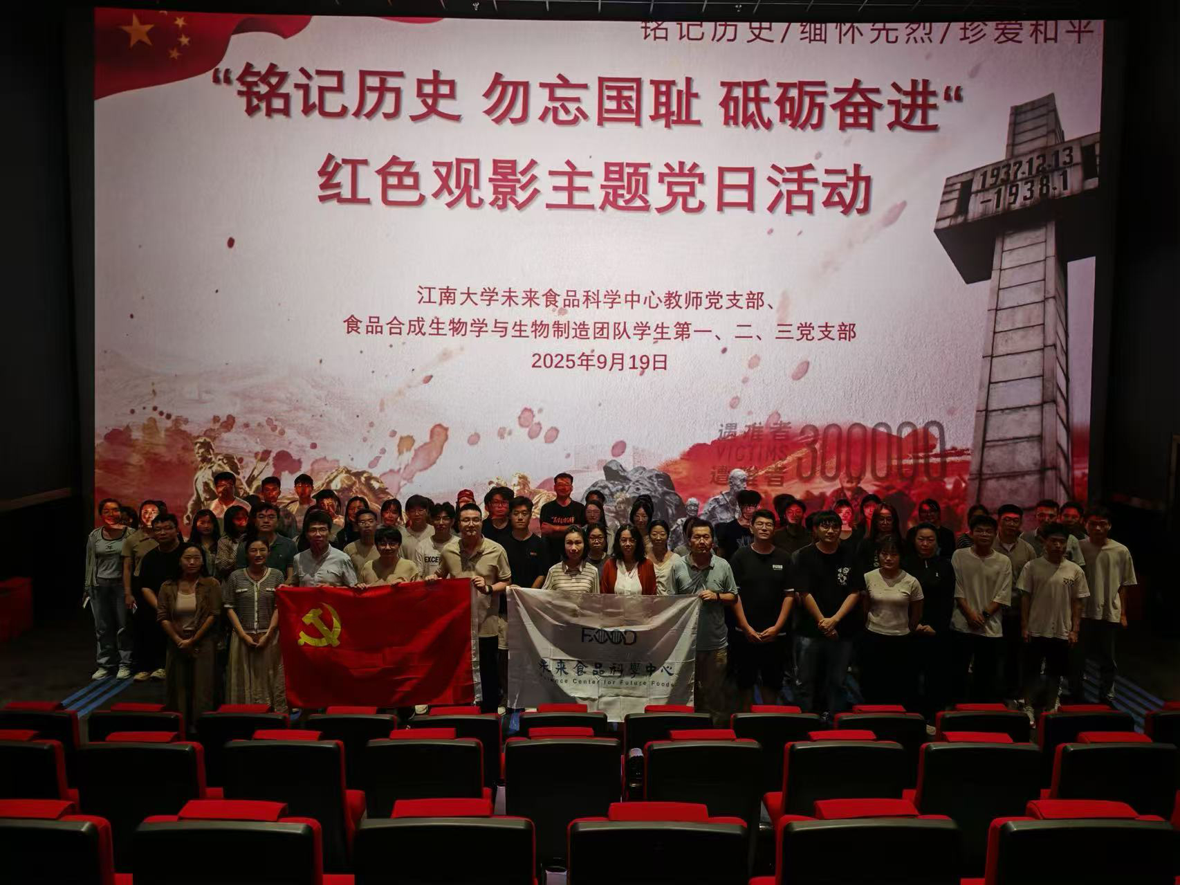 为引导师生铭记历史,加强爱国主义教育和党性教育,激发爱国情怀和责任担当,9月19日下午,我中心教师党支部联合食品合成生物学与生物制造团队学生党支部共同开展“铭记历史 勿忘国耻 砥砺奋进”红色观影主题党日活动,师生党员共计100余名观看电影《731》。